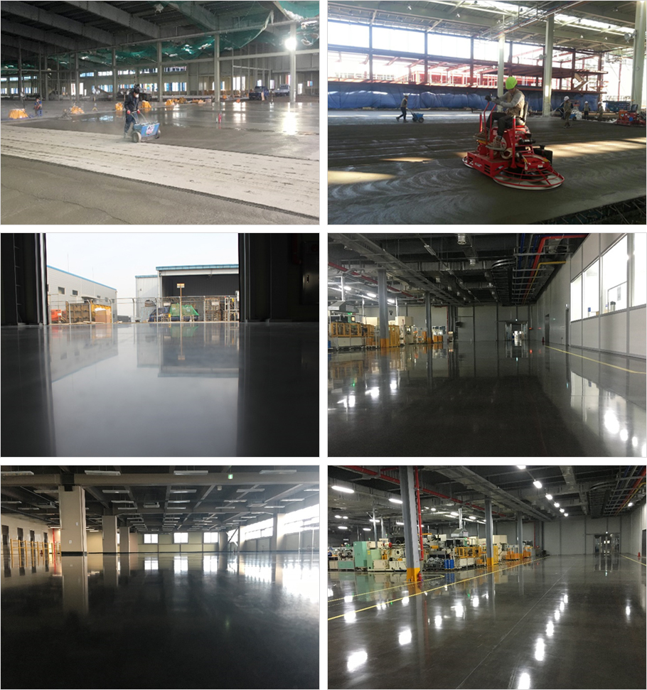 특수골재, 규사, 시멘트, 메탈, 칼라안료 등으로 구성된 제품으로 콘크리트 타설 시 함께 도포하여 표면을 강화시키는 시스템입니다. 특히 Dry-shake는 마모저항성(BS 8204기준 AR1,2,Special class)이 뛰어나 중장비 이동장소, 물류창고, 초평탄바닥 등에 적합합니다. 신규 타설 콘크리트에 산포 및 미장 시 컬러, 내마모성, 평탄한 표면을 형성합니다.