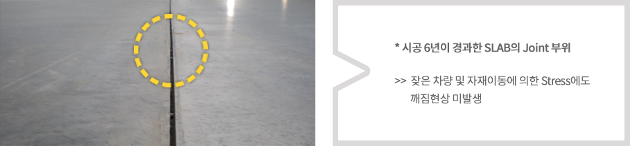 - CON’C 건조수축시 Construction joint 부위가 시공후 각종 Stress(차량, 자재 등)로부터 spalling(콘크리트 깨짐)하자 방지