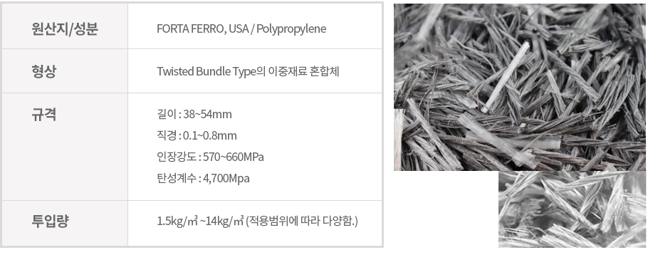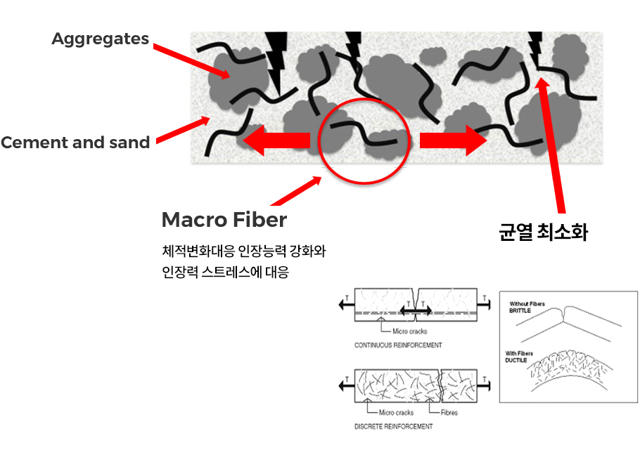 MFRC는 Macro Fiber가 콘크리트 내 3차원보강으로 균열량이 현저히 감소하고, 충격강도 향상 및 내피로도, 콘크리트 인성을 높여주는 공법으로 SOG Slab 및 Topping Slab에 적합한 공법이다.